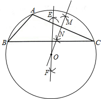 点评:此题主要考查了三角形外接圆的作法,关键是作出任意两边的垂直平分线,找出外接圆的圆心.