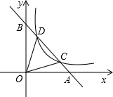 8.如图,直线AB过点A(8,0)、B(0,6).反比例函数$y=\frac{p}{x}$(p>0)的图象与直线AB交于C、D两点,连接OC、OD.