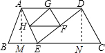 (2)①过A作AM⊥BC,过D作DN⊥BC,可构造矩形AMND,进而得到MN=AD=3,再求出BC长,可判定△ABE≌△DCE得到AE=DE,再证明四边形GHEF是平行四边形,然后证明GH=GF可得四边形GHEF是菱形;②根据有一个角是直角的平行四边形是矩形可得∠AED=90°.