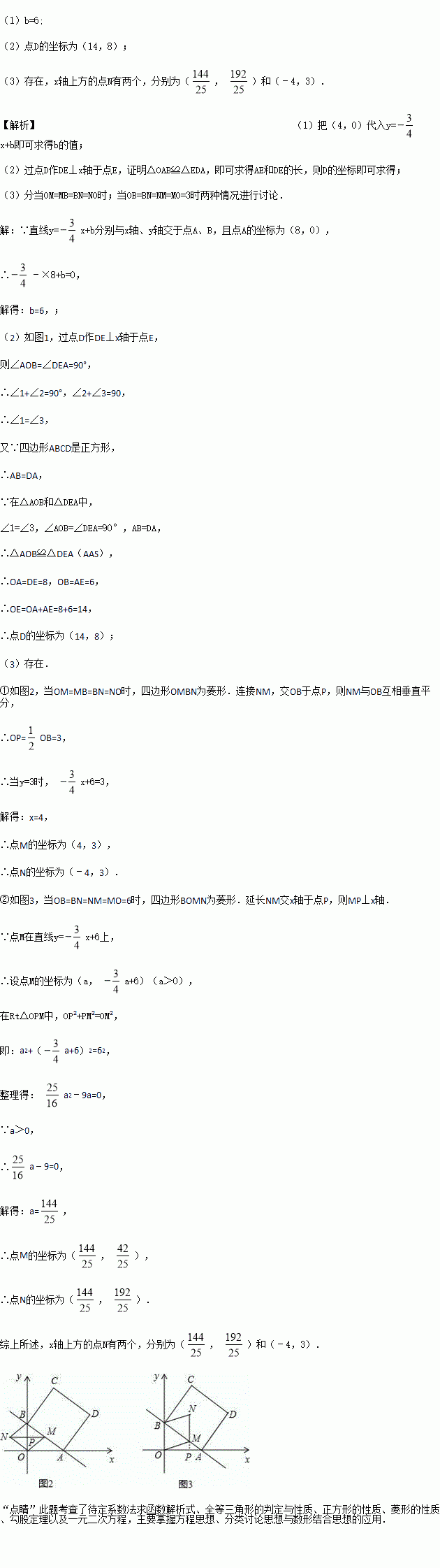 分别与x轴、y轴交于点A、B,且点A的坐标为(8,0),四边形ABCD是正方形.