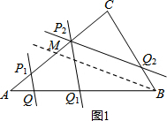 当点P在CM上时,过点P2只能画出2条截线P2Q1、P2Q2,![]()