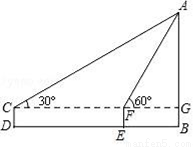 如图,某校数学兴趣小组为测量校园主教学楼AB的高度,由于教学楼底部不能直接到达,故兴趣小组在平地上选择一点C,用测角器测得主教学楼顶端A的仰角为30°,再向主教学楼的方向前进24米,到达点E处(C,E,B三点在同一直线上),又测得主教学楼顶端A的仰角为60°,已知测角器CD的高度为1.6米,请计算主教学楼AB的高度.(