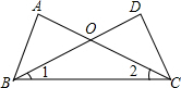 如图,已知AB=DC,AC=DB.求证:∠1=∠2.