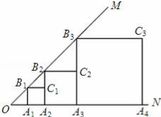 已知,如图,∠MON=45°,OA1=1,作正方形A1B1C1A2,周长记作C1;再作第二个正方形A2B2C2A3,周长记作C2;继续作第三个正方形A3B3C3A4,周长记作C3;点A1、A2、A3、A4…在射线ON上,点B1、B2、B3、B4…在射线OM上,…依此类推,则第n个正方形的周长Cn= .