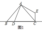 ②当D在BC延长线上时,将线段AD绕点A逆时针方向旋转90°得到线段AF,连接CF.