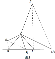 如图3,①当D在BC边上时,将线段AD1绕点A顺时针方向旋转90°得到线段AE,连接BE,