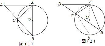 ·ÖÎö£º£¨1£©¸ù¾ÝÇÐÏßµÄÐÔÖÊÇóµÃ¡ÏDAC+¡ÏEAC=90¡ã£¬¸ù¾ÝÔ²ÖܽǵÄÐÔÖÊÇóµÃ¡ÏEAC+¡ÏE=90¡ã£¬´Ó¶øÇóµÃ¡ÏDAC=¡ÏE£¬¸ù¾Ýͬ»¡Ëù¶ÔµÄÔ²ÖܽÇÏàµÈµÃ³ö¡ÏE=¡ÏB£¬