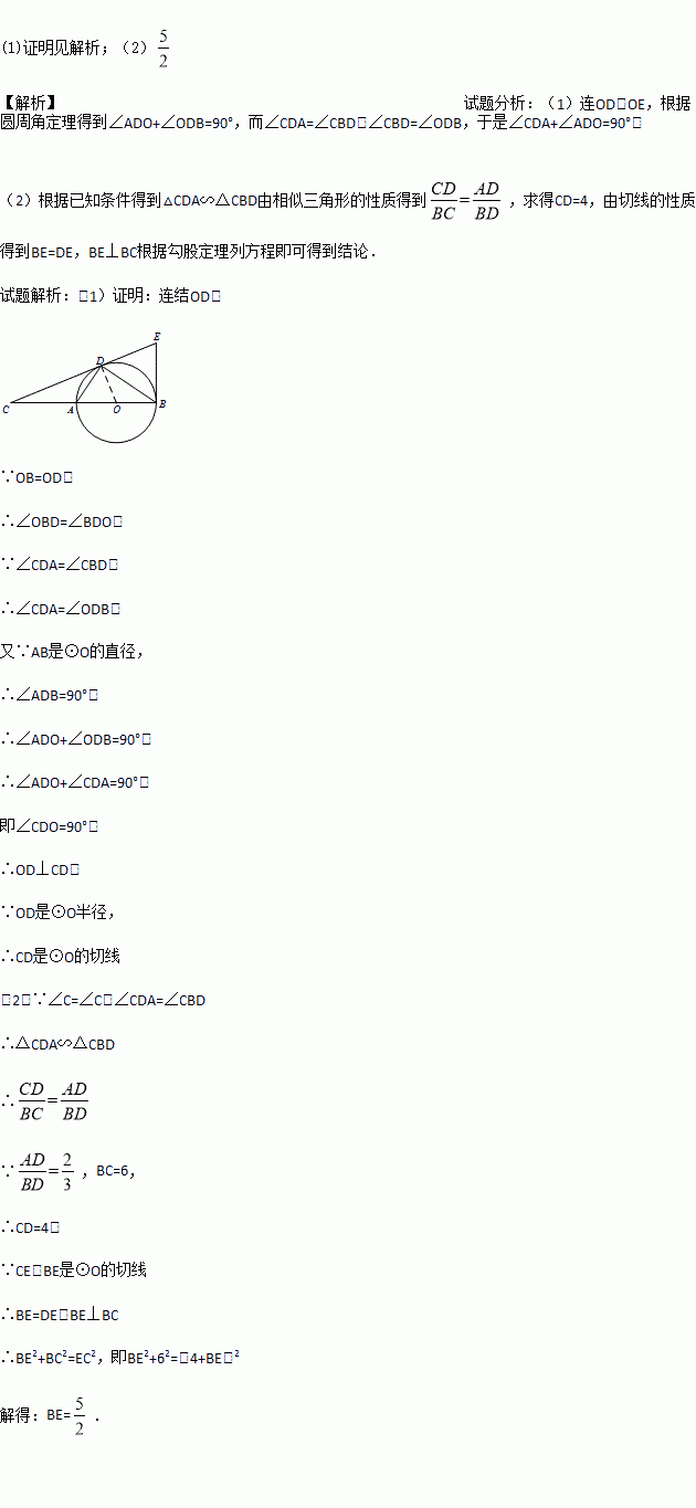 (2)过点B作⊙O的切线交CD的延长线于点E,BC=6,AD:BD=2:3,求BE的长.