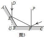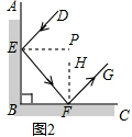 (2)证明:①如图2,过点E作EP⊥AB,过点F作FH⊥BC,根据反射定律可知∠DEP=∠FEP,∠EFH=∠GFH,![]()