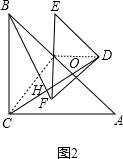 (2)连结OC、OD,BF与CD相交于H,如图2,根据等腰直角三角形的性质得OC⊥AB,OD⊥EF,则∠BOF=∠DOC,接着可证明△BOF≌△COD得到BF=CD,∠OBF=∠OCD,然后证明∠CHB=∠COB=90°得到BF⊥CD;