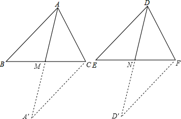 分析:延长AM至A′,使A′M=AM,延长DN至D′,使D′N=DN,连接A′C、D′F,利用“边角边”证明△ABM和△A′CM全等,根据全等三角形对应边相等可得AB=A′C,同理可得DE=D′F,从而得到A′C=D′F,再利用“边边边”证明△AA′C和△DD′F全等,根据全等三角形对应角相等可得∠A′=∠D′,然后利用“边角边”证明△A′MC和△D′NF全等,根据全等三角形对应边相等可得MC=NF,再求出BC=EF,然后利用“边边边”证明△ABC≌DEF即可.