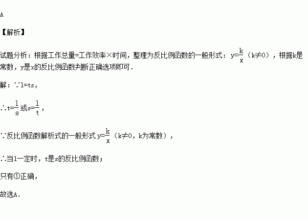 ①当l一定时,t是s的反比例函数;