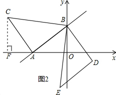 (3)过点C作CF⊥OA与点F,证明△AOB≌△CFA,得到点C的坐标,求出直线AC解析式,根据AC∥BD,所以直线BD的解析式的k值与直线AC的解析式k值相同,设出解析式,即可解答.