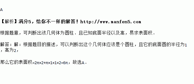 一个空间几何体的主视图和左视图都是边长为2的正方形,俯视图是一个圆,那么这个几何体的表面积是( )