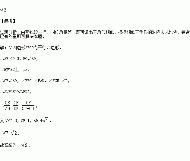 ,AF交BC于E,交DC的延长线于F,且CF=1,则CE的长为 .
