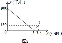 £¨2£©·ÖÁ½ÖÖÇé¿ö£ºµ±0¡Üx¡Ü3ʱ£¬Éè¸ßËÙÁгµÀëÒҵصÄ·³ÌyÓëÐÐʻʱ¼äxÖ®¼äµÄº¯Êý¹ØÏµÊ½Îª£ºy=kx+b£¬°Ñ£¨0£¬900£©£¬£¨3£¬0£©´úÈëµÃµ½·½³Ì×飬¼´¿É½â´ð£»¸ù¾ÝÈ·¶¨¸ßËÙÁгöµÄËÙ¶ÈΪ300£¨Ç§Ã×/Сʱ£©£¬´Ó¶øÈ·¶¨µãAµÄ×ø±êΪ£¨3.5£¬150£©£¬µ±3£¼x¡Ü3.5ʱ£¬Éè¸ßËÙÁгµÀëÒҵصÄ·³ÌyÓëÐÐʻʱ¼äxÖ®¼äµÄº¯Êý¹ØÏµÊ½Îª£ºy=k1x+b1£¬°Ñ£¨3£¬0£©£¬£¨3.5£¬150£©´úÈëµÃµ½·½³Ì×飬¼´¿É½â´ð£»