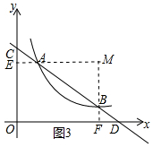 (2)①证明:过点A作y轴的垂线交y轴于点E,过点B作x轴的垂线交x轴于点F,延长EA、FB交于点M,如图3所示.![]()