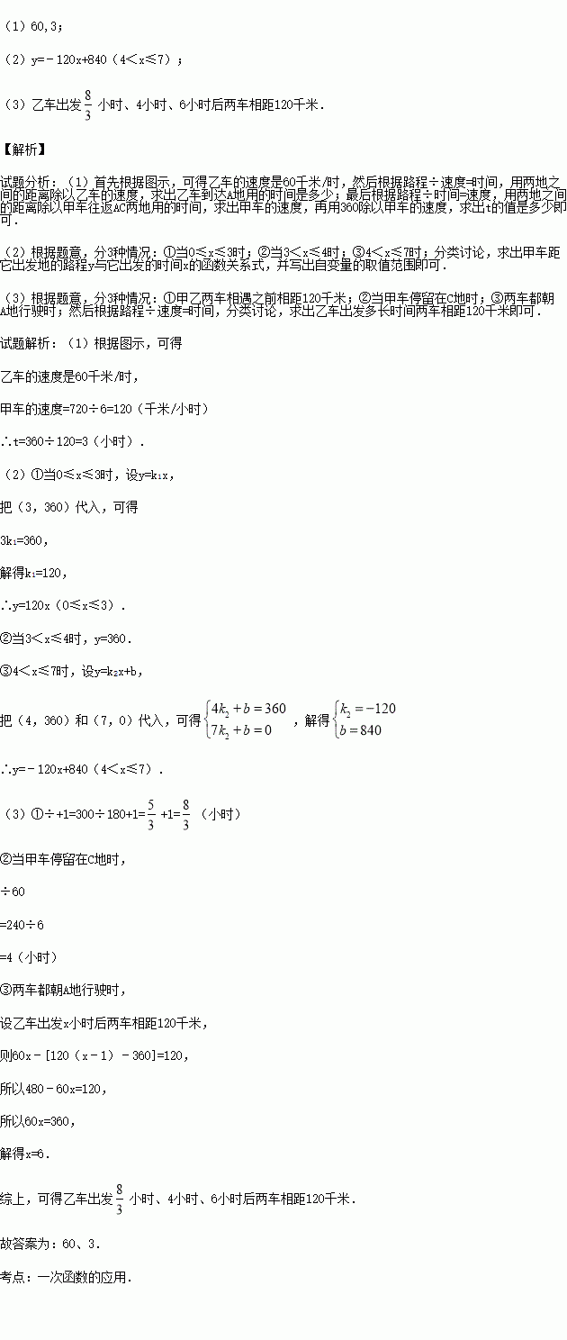 (3)直接写出乙车出发多长时间两车相距120千米.