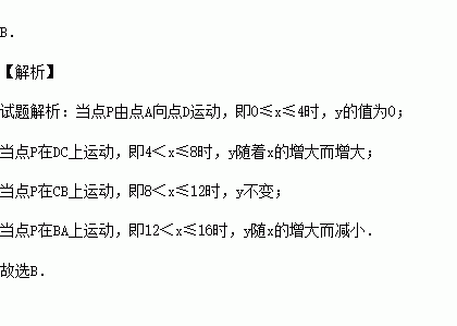 如图,正方形ABCD的边长为4,P为正方形边上一动点,运动路线是A→D→C→B→A,设P点经过的路程为x,以点A、P、D为顶点的三角形的面积是y,则下列图象能大致反映y与x的函数关系的是( )
