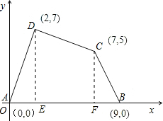点评:本题考查了坐标和图形的性质及三角形面积的计算,难度不大,关键要将四边形的面积的可以看做是△ADE,△CBF和梯形EFCD的面积和来进行计算.