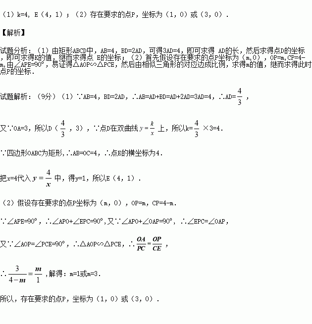 (2)点P是线段OC上的一个动点,是否存在点P,使∠APE=90°?若存在,求出此时点P的坐标,若不存在,请说明理由.