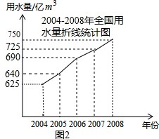 则2008年全国生活用水量=625×(1+20%)=750(亿m3);
