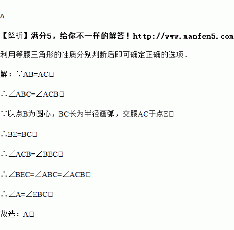 如图,已知等腰三角形ABC,AB=AC,若以点B为圆心,BC长为半径画弧,交腰AC于点E,则下列结论一定正确的是( )