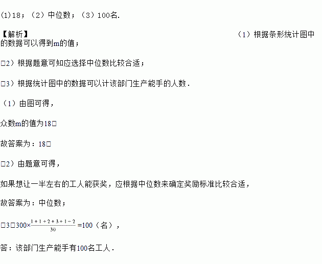 (2)为调动工人的积极性,该部门根据工人每天加工零件的个数制定了奖励标准,凡达到或超过这个标准的工人将获得奖励.如果想让一半左右的工人能获奖,应根据 来确定奖励标准比较合适.(填“平均数”、“众数”或“中位数”)