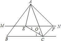 分析 (1)根据角平分线定义得∠1=∠2,再根据平行线的性质得∠1=∠3,则∠2=∠3,所以OE=OC,同理可得OC=OF,所以OE=OF;