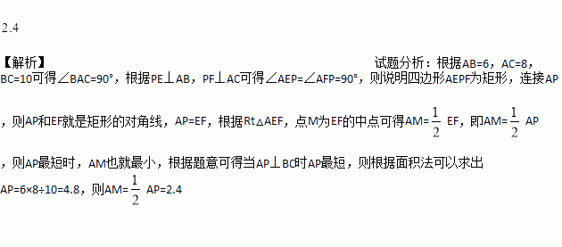 如图,在△ABC中,AB=6,AC=8,BC=10,P为边BC上一动点,PE