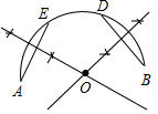 分析 在$\widehat{AB}$上取点DE,连接BD,AE,分别作弦AE,BD的垂直平分线,两垂直平分线的交点即为圆心O.