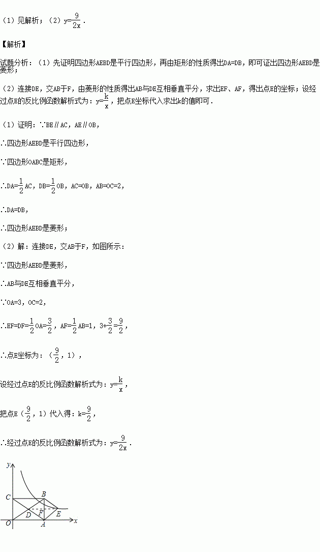 (2)如果OA=3,OC=2,求出经过点E的反比例函数解析式.