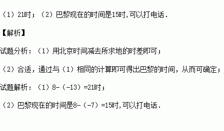 下表列出了国外几个城市与北京的时差(带正号的数表示同一时刻比北京的时间早的时数)。现在的北京时间是上午8∶00
