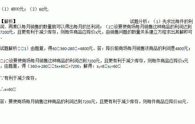 (2)要使商场每月销售这种商品的利润达到7200元,且更有利于减少库存,则每件商品应降价多少元?
