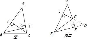 解:(1)如图一,当三角形为锐角三角形时,∠BOC在三角形内部,