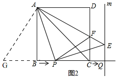分析 (1)先判断出AB=PQ,用同角的余角相等得出∠BAP=∠QPE,进而得出△ABP≌△PQE,即可判断出三角形APE是等腰直角三角形即可;