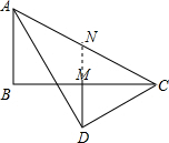 分析:(1)延长DM交AC于N,可证明AN=DN=CN,可知N为AC中点,则M为BC中点;