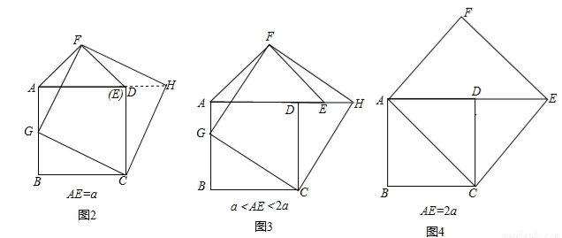 在图1至图4中,正方形ABCD的边长为a,等腰直角三角形FAE的斜边AE和AD在同一直线上.