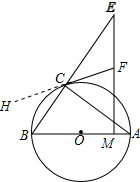 分析 (1)延长FC至H,由AB是⊙O的直径,得出∠ACB=90°,由EM⊥AB,得出∠EMB=∠ACB=90°,证得△ABC∽△EMB,得出∠CEF=∠CAB,由弦切角定理得出∠CAB=∠BCH,由对顶角相等得出∠BCH=∠ECF,推出∠CEF=∠ECF,即可得出结论;