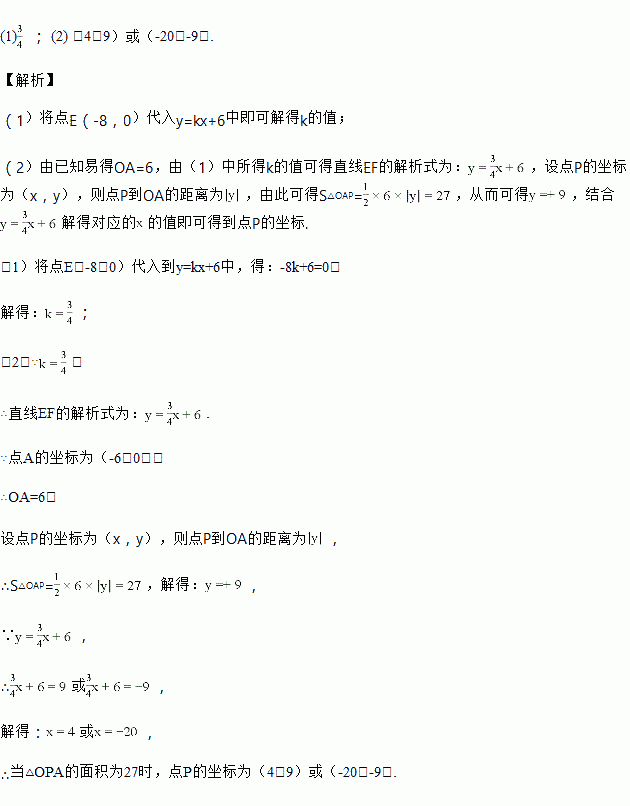 如图,直线y=kx+6分别与x轴、y轴交于点E,F,已知点E的坐标为(-8,0),点A的坐标为(-6,0).
