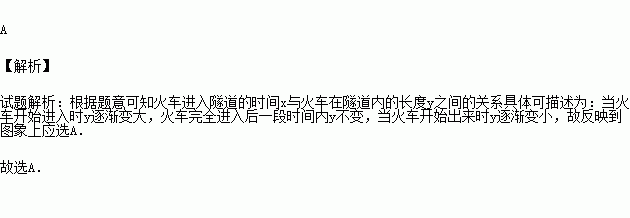 一列火车匀速通过一座桥(桥长大于火车长)时,火车在桥上的长度y (m)与火车进入桥的时间x (s)之间的关系用图象描述大致是( )