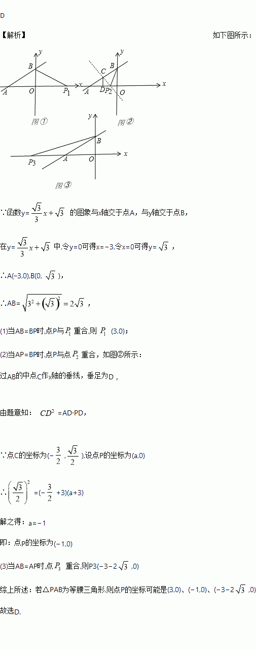 的图象与x轴交于点A,与y轴交于点B,点P是x轴上一点,若△PAB为等腰三角形,则点P的坐标不可能是( )