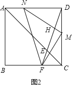 ③若FM=MN,显然此时点F在BC边上,如图2,![]()