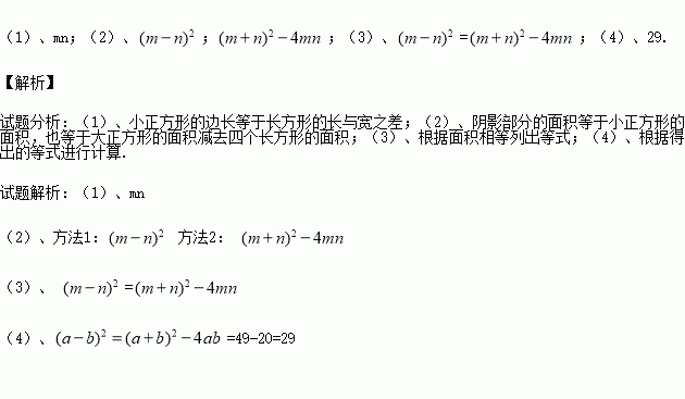 (3)观察图②,你能写出代数式:(m+n)2,(m-n)2,mn之间的等量关系吗?