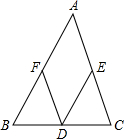 分析 作出图形,根据三角形的中位线平行于第三边并且等于第三边的一半可得DE=$\frac{1}{2}$AB=BF,DF=$\frac{1}{2}$AC=CE,然后整理即可得证.