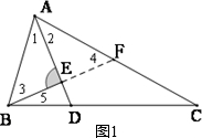 解答:解:(1)如图1,延长BE交AC于F.