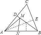 解:作AE⊥BC于E,交BD于M,作MN⊥AB于N,