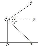 分析:过点C作AB 的垂线,垂足为E,根据题意可得出四边形CDBE是矩形,再由CD=12m,∠ECB=45°可知BE=CE=12m,由AE=CE•tan30°得出AE的长,进而可得出结论.