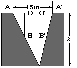 如图所示是一山谷的横截面示意图,宽AA'为15m,用曲尺(两直尺相交成直角)从山谷两侧测量出OA=1m,OB=3m,O'A'=0.5m,O'B'=3m(点A、O、O'、A'在同一条水平线上),则该山谷的深h为(     )m。