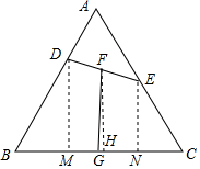 分析 作DM⊥BC于M,EN⊥BC于N,FH⊥BC于H,得到DM∥FG∥EN,得到MH=NH,根据等边三角形的性质得到∠B=∠C=60°,解直角三角形得到FH=$\frac{1}{2}$(DM+EN)=$\frac{7\sqrt{3}}{2}$,根据勾股定理即可得到结论.